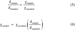 ![]() where m is the mass of the magnet (e. g. 1.6338 g) and g is the gravity constant. For small θ, senθ ≈ d/L F2 corresponds to the force induced by the magnetic fied: ![]() where χ is the magnetic susceptibility of the sample, µo is the Bohr magneton (BM) constant (eh/4πm = 0.927 x 10-20 erg/Gauss), and H is the applied magnetic field. Although it is possible to calculate F1 using the values of m, g and the d/L = senθ, it is more convenient to use an empirical procedure usually applied to determine the magnetic susceptibility constant χ, by calibrating the experiment with a standard sample such as FeSO4.7H2O (χ = 11.2 x 10-3 cm3 mol-1).12 This procedure allows to cancel the influence of any possible variables, such as air resistance and magnetic fluctuations from the environment. For obtaining the magnetic constants, equations (1) and (2) should be compared and transformed into (3) and (4). ![]() Dividing the two equations, the following relationship is obtained: ![]() So, in order to obtain the magnetic susceptibility of a sample, the distance d, corresponding to the detachment point, should be first determined for a standard compound, and then the measurement should be repeated with the sample, by keeping the same experimental arrangement. In this experiment, the FeSO4.7H2O compound was taken as reference because of its chemical purity, good thermal and mechanical stability, low cost and for exhibiting intermediate magnetization parameters for allowing more accurate measurements of conventional samples. By using this standard, all the magnetic susceptibilities are expressed in cm3 mol-1 and there is no need to correct for the molecular mass of the compounds. The typical performance of the pendulum balance is shown in Figure 4, and Table 1. All the measurements were carried out in triplicate.