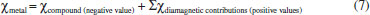As shown in Table 1, the restoring distances are dependent upon the pendulum height (L), while the associated magnetic forces increase with the number of unpaired electrons from CuII (d9) to MnII(d5). In the case ZnSO4.7H2O, there is a visible repulsion between the magnet and the sample, reflecting its diamagnetic nature. The diamagnetic contribution of the ligands and anions can be calculated using the Pascal constants,13,14 in order to evaluate the magnetic susceptibility of the metal ion alone, χmetal : ![]() The calculated contribution of the diamagnetic constants can be seen in Table 1 and are practically negligible, except for the CuSO4.5H2O compound which exhibits only one unpaired electron. The results for the ZnSO4.7H2O sample are quite consistent with the diamagnetism of the compound (Table 1).
