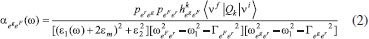 UNIFICANDO O EFEITO SERS Considerando o efeito Raman Ressonante, a Ressonância Plasmônica de Superfície e as transições de transferência de carga partícula-ligante, discutidas anteriormente, uma visão unificada introduzida por Lombardi e Birke,59 em extensão ao formalismo de Albrecht,28 para o efeito SERS pode ser equacionada. Nesse caso, o momento de transição de polarizabilidade é descrito pela Equação 2, onde os termos do denominador consideram a contribuição de cada mecanismo. O mecanismo EM é considerado no primeiro termo, que inclui as funções dielétricas da nanopartícula metálica [ε1(Ω) e ε2], do ambiente ao redor da partícula (εm), e atinge seu valor mínimo na ressonância plasmônica, maximizando o efeito. Esse termo surge da equação da seção de choque de extinção calculada por Mie, que racionaliza os processos de espalhamento e absorção de radiação para uma partícula esférica isolada, conforme discutido na primeira parte deste artigo. Além disso o campo elétrico oscilante de uma nanopartícula isolada é proporcional a r-3, onde r é a distância de um ponto em relação à superfície da partícula, estando essencialmente confinado na superfície. Portanto, pelo efeito EM, apenas os modos vibracionais das moléculas próximas à superfície serão intensificados.60,61 O segundo termo do denominador envolve as interações de transferência de carga entre os estados eletrônicos do metal, representado pelo nível Fermi da partícula (eF) e os estados eletrônicos excitados (er) da molécula ligada à superfície, e condição de ressonância ocorre quando a frequência da radiação incidente (Ω1) é igual a diferença de energia entre os estados eletrônicos acoplados do ligante e da partícula metálica ![]() O numerador é o produto dos momentos de transição de dipolo da molécula adsorvida ( Os quatro termos devem ser diferentes de zero para ocorra a intensificação de um determinado modo normal através do efeito SERS. Essa equação apresenta uma utilidade enorme por explicar com certa precisão os resultados observados experimentalmente, porém, ainda existem pontos abertos para discussão. Por exemplo, para sistemas mais complexos envolvendo estruturas anisotrópicas ou condições de acoplamento interpartículas, uma expansão do termo referente ao efeito EM deveria ser considerada. Além disso, efeitos recentemente descobertos, como o efeito CHEM, ainda não apresentam uma forma unificada para que possam ser considerados na equação.