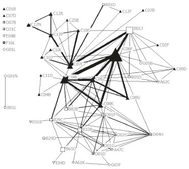 ![]() Figura 6. Mapa de interações entre os códigos da Oxiteno