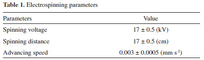 EXPERIMENT AlCl3, ZrCl4, CeCl4 and LaCl3 were dissolved in the mixed solution of 30 mL CH2Cl2 and 0.95 mL C6H14O with the Ce Zr La and Al molar ratio of 1:1:0.06:2, while the mass fraction of AlCl3 is 1.94 wt.%. The solution was subsequently dried at 80 °C for 2 h to obtain white powder named CeCl4-ZrCl4-LaCl3-AlCl3. The white powder, as well as PVP, were then dissolved in the mixed solvent of 9 mL C2H5OH and 4 mL DMF, in which the content of mass fraction was 4 wt.%. Finally, Pt Rh and Pd molar ratios of 0.75:0.01:1, 0.75:0.23:1 and 0.75:0.34:1 were respectively dissolved in the mixed solution to prepare Pt-Rh-Pd / CeO2-ZrO2-La2O3-Al2O3 precursor solution. The precursor solution of Pt-Rh-Pd / CeO2-ZrO2-La2O3-Al2O3 was loaded by a 10 mL syringe with a stainless-steel needle whose diameter was 0.8 mm. Several parameters related to electrospinning are listed in Table 1. Process scheme of preparing Pt-Rh-Pd / CeO2-ZrO2-La2O3-Al2O3 fibrous catalyst by electrospinning is showed in Figure 1.
