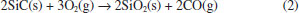 Em outro estudo realizado por Tishchenko, Ilchenko e Kuzema11 sobre a síntese do carbeto de silício, foram realizadas análises térmicas empregando TGA-DTG e TG-DSC, nas quais foi observada uma pequena perda de massa em relação à temperatura. De acordo com os autores,11 os resultados das curvas de TGA e DSC de SiC apontam perdas de massa em diversas regiões, sendo a primeira região localizada entre as temperaturas de 30 a 194 °C (com o pico de perda a 69 °C). Essa perda é acompanhada de um evento endotérmico que indica a remoção de água da amostra. Nesta fase, a perda total de massa foi de 0,23%. A perda correspondente à oxidação do carbono foi observada a 325-360 °C. Em seguida, há um aumento da massa da amostra, indicando o início da oxidação do SiC. Entre as temperaturas de 325 a 360 °C, a perda total da amostra foi de 0,04%, o que significa que a quantidade de carbono residual em SiC não foi menor que esse valor. O crescimento total da massa durante o aquecimento entre 360 e 1100 °C foi de 0,23%, o que pode ser uma evidência de que a superfície das partículas de carbeto de silício oxidam-se neste intervalo de temperatura. O carbeto de silício está sujeito a dois tipos de oxidação: a ativa, que se caracteriza por uma perda de massa contínua e linear, podendo levar o material à completa vaporização, e a passiva, que leva à formação de camada de sílica sobre a superfície do SiC, melhorando o seu desempenho em várias aplicações.11 Na maioria dos casos, a oxidação é passiva, ou seja, resulta na formação de uma camada de sílica sobre a superfície do SiC, onde uma ampla variação nas taxas de reação e na morfologia dos produtos da reação pode ser verificada.9 Já o processo de oxidação ativa ocorre em pressões de O2 inferiores à 1 bar e pode ser compreendido através da Equação 1: ![]() Nessa situação (oxidação ativa), o SiO formado vaporiza após sua formação, levando à perda de massa. Já a oxidação passiva acontece em pressões mais próximas a 1 bar e cuja equação é: ![]() A formação do SiO2 durante a oxidação passiva é depositada sobre a superfície do SiC, levando a um aumento efetivo de massa. Essa deposição atua como um protetor antioxidante e, por consequência, anticorrosivo.12 Aliadas às propriedades do carbeto de silício, o emprego de silicato de potássio como aglomerante (binder) conferiu ao revestimento desenvolvido, após processo de secagem (cura), uma alta rigidez resultante da evaporação da água da solução, bem como das diversas reações químicas que ocorrem paralelamente à evaporação de água do meio. Esses processos de estabilização e consolidação são denominados de "silicificação". Numa dessas reações, o silicato (water glass) reage com o dióxido de carbono da atmosfera, conforme apresentado na Equação 3.13 ![]() A sílica gel e o metassilicato gel formados nessas reações complexas contêm uma grande quantidade de água. À medida que essa água evapora, esses géis são convertidos em estruturas sólidas de silicato amorfo, com um baixo teor de água residual, conferindo ao revestimento uma boa resistência química que protege os substratos de intempéries ambientais e temperaturas agressivas, fornecendo, após o processo de cura, um acabamento mate e com baixa rugosidade.13