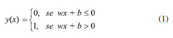 FUNDAMENTOS TEÓRICOS O algoritmo de redes neurais utilizado nesse artigo é de aprendizado supervisionado. Isso significa que, para realizar o ajuste, é necessário fornecer tanto os valores da variável independente quanto os da variável alvo, que são chamados de conjunto de treino. Então, para, por exemplo, ajustar uma função de uma SEP que relacione a energia em função das coordenadas do sistema, as variáveis independentes são as coordenadas do sistema e a variável alvo é a energia. Também, é um algoritmo de regressão por perceptron em multicamada. O perceptron é uma unidade de decisão binária. Se combinado em uma rede de perceptron e, após o ajuste dos seus parâmetros, seria possível utilizar em um aparelho que teria a capacidade de reconhecer padrões. Logo, aparentemente, ele poderia compreender, o que dá origem ao seu nome (do inglês, perceive). 31,32 A rede de perceptrons é o que historicamente deu origem às redes neurais, pela semelhança no seu comportamento, tanto no uso de operadores lógicos, quanto no comportamento binário em que, se a variável de entrada assumir um valor maior que um limite predefinido, o perceptron produz como valor de saída um. Ao contrário, o valor produzido é zero. Isso seria semelhante a um neurônio disparar após haver uma mudança no potencial elétrico dentro da célula.31 Matematicamente, a unidade perceptron é representada pela equação 1, que recebe um valor de entrada x, e tem como parâmetros os valores de w e de b, que são, respectivamente, o peso dado ao valor de entrada e o negativo do valor limiar da unidade.