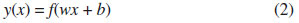 Esse comportamento binário, descrito para a rede de perceptrons, claramente seria útil apenas para tarefas de classificação. Para ser um algoritmo de regressão, há apenas uma transformação do y de uma variável discreta para uma variável contínua. Assim, o parâmetro b perde o sentido de um valor limiar para ser encarado como um parâmetro linear da equação, que é, agora, chamado de viés. Por fim, a característica não linear do ajuste vem da aplicação de uma função de ativação que recebe, como argumento, a função anterior. A representação de cada unidade é dada por: