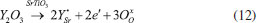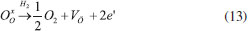 Many studies have been presented Y-doped SrTiO3 as a potential alternative material for electrical, electrochemical, and chemical applications due to its mixed (ionic and electronic) conduction and its morphological characteristics.61 In the work, Zhao et al.,62 SrTiO3 doped with yttria, deficient at the A (Sr) site, ((Y0.08Sr0.92)1-xTiO3-δ) was synthesized by the solid-state reaction. The A deficiency limit was lower than 6% (mol) in 5% H2 in air at 1500 °C. The sinterability of the samples ((Y0.08Sr0.92)1-xTiO3-δ) decreased with increasing of x deficiency level. The ionic conductivity of ((Y0.08Sr0.92)1-xTiO3-δ) decreases, while the electronic conductivity reduced with the number of A deficient sites. Chemical analysis of the defects indicated that the introduction of the deficiency at the A-site results not only an increase in oxygen vacancy concentration, but also in decreasing Ti3+ concentration. In the work of Huang et al. (2006 (b)),63 Yttrium-doped strontium titanate (YxSr1-xTiO3) was prepared by the solid-state reaction. The maximum electrical conductivity found was with x = 0.08, 71 S cm-1 at 800 °C. In the work of Rosa Silva et al.,64 SrTiO3 was synthesized by solid-state reaction method, calcined, and sintered to obtain undoped (ST), 4% (YST04) and 8% (YST08) of Y-dopant and as a heterojunction with yttria-stabilized zirconia (YST08/YSZ). The effects of calcination atmosphere and dopant concentration on formation of the perovskite and grain size distribution of the material were investigated. It was observed that calcination under Ar/5%H2 atmosphere increased the dopant maximum concentration in the SrTiO3 cubic crystal structure when compared to inert atmosphere. When the Y solubility limit was exceeded, a pyrochlore phase Y2Ti2O7 was formed at the intergranular region due to the deficiency of oxygen vacancies, especially in the presence of inert atmosphere. According to Drozdz et al.,54 the insertion of Y2O3 in the crystalline structure of SrTiO3 is conducted as shown by the reaction presented in Equation 12. The donated electrons can occupy empty spaces in the conduction band, create small polarons located in the titanium sites, reduce ions from Ti4+ to Ti3+ or they can be associated with oxygen vacancies. ![]() Thus, in order to replace a Y3+ cation at a Sr2+ site, there must be enough oxygen vacancies to absorb the three oxygen atoms from Y2O3. In the same work, Drozdz et al.54 also showed the effect of the reducing atmosphere on oxygen present in the SrTiO3 structure, as seen in Equation 13. Therefore, when exposing the SrTiO3 structure to a reducing atmosphere, a greater amount of oxygen vacancies appears, and they are necessary for the incorporation of Y3+ in the crystalline structure of the perovskite, thus increasing the solubility of the material for this type of doping. ![]() TGA and DTA curves presented a peak of water desorption and two overlapping peaks of SrCO3 phase change and decomposition. Ceramic microstructure was studied by SEM-EDS and the results showed that Y incorporation inhibits the grain growth in sintering step, reaching a smallest value of grain size in YST08/YSZ heterojunction under Ar/5%H2 atmosphere.64 Curi65 developed a one-dimensional and isothermal phenomenological mathematical model of ion transport and electronic transport anode bilayer structures MIEC/electrolyte used in SOFC. Performance simulation results showed that yttrium-doped strontium titanate can replace conventional anode because it reached minimal polarization resistance at 670 °C, which is lower than the electronic conduction temperature of the conventional anode Ni/YSZ. Furthermore, the decrease in anode thickness, which reduces the ohmic polarization, also increased the charge transfer rates. Pyrochlore anodes Pyrochlores are the only oxides in which simultaneous transformations of order and disorder of cations and anions align the structure. Some crystals have characteristics of allotropy and polymorphism, that is, they exist in more than one crystalline form depending on the conditions of the medium (pressure and temperature). Curi65 mentioned that the crystalline Ti and Zr structures at room temperature are hexagonal (HC) and at temperatures above 883 °C in the case of Ti and 872 °C, for Zr, they become body-centered cubic (BCC). For Ca it is a face-centered cubic (FCC) at room temperature and BCC at temperatures above 447 °C. This structural change can be explained by the atomic packing factor (APF) and coordination number, which give the metals less energy and stability arrangements. However, HC and FCC crystals have the same APF value (74%) and a coordination number of 12, however, the atomic packing is differentiating them. Defect pyrochlore oxide powders ABi2Ta5O16 in pseudo-binary systems BiTaO4-ATa3O8 (A=Na, Tl) were prepared by the solid-state method (Ahmed et al., 2019).66 The structural study showed cubic crystal lattice with Fd3m space group to all oxides. The FTIR and Raman bands observed for these compositions are consistent with the Raman spectra expected for defect pyrochlores, ABBO'O7-x. The morphology of sintering ceramics indicates good densification of the materials. The dielectric constants are in the range of 107-110 with a negative temperature coefficient of permittivity. Dielectric losses of the compound NaBi2Ta5O16 presented the maximum values versus temperature and frequency, this phenomenon is related to dielectric relaxations. The activation energy and relaxation time τ0 corresponding these phenomena were found to be 0.16 eV and 0.6 × 10-13 s, respectively. Such dielectric and electrical properties make the compound NaBi2Ta5O16 attractive in the electrochemical applications. In pyrochlore oxides (A2B2O7), there are different valence combinations in A and B cations, but most of the known pyrochlores, including in the work by Wuensh et al.,67 the phases contain A3+ and B4+. Among the physical properties of these materials, the high mobi