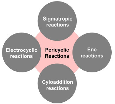 1,3-DIPOLAR CYCLOADDITION REACTIONS: GENERAL ASPECTS AND MECHANISMS The 1,3-dipolar cycloaddition is one of the most versatile methods in organic synthesis, since it enables the access to a large number of five-membered heterocycles. This reaction is a particular type of the general class of pericyclic reactions, which are concerted reactions that proceed via a transition state and do not involve the formation of intermediaries. Such reactions cannot be described in terms of nucleophile-electrophile interactions, and it is not possible to discern the type of transition state via radicals or ionic intermediates. Decades ago, Robert B. Woodward (1965 Nobel Prize) and Roald Hoffmann (1981 Nobel Prize) defined a pericyclic reaction as "a reaction in which all changes in chemical bonds in a cycle are first order and occur in concert".13 Pericyclic reactions can be divided into 4 classes: electrocyclic reactions, sigmatropic rearrangements, ene reactions and cycloaddition reactions (Figure 2).14