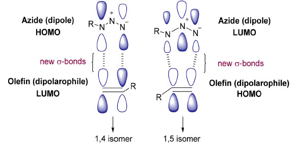 ![]() Scheme 2. Possible orbitals interaction in the transition state of an azide-alkene 1,3-dipolar cycloaddition