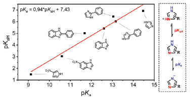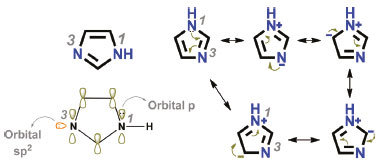 ![]() Figura 5. Equilibrios ácido-base para a molécula de IMZ, pirrol e piridina6