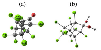![]() Figure 2. Chlordecone computational models: (a) chlordecone and (b) chlordecone hydrate