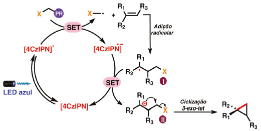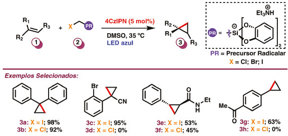 ![]() Esquema 2. Ciclopropanação de alcenos fotocatalisada por 4CzIPN