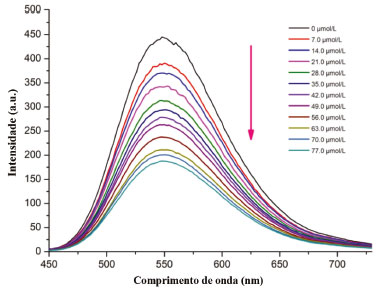 ![]() Figura 6. Capacidade de quenching por fluorescência de 1a versus comprimento de onda. Reimpresso com permissão do J. Am. Chem. Soc., 2018, 140, 8037. Copyright © 2018, American Chemical Society