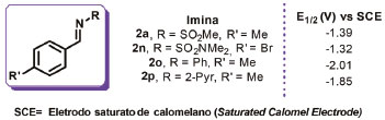 ![]() Figura 16. E½ de iminas medido a partir de voltametria cíclica