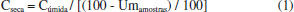 Comparação dos resultados para amostras liofilizadas e amostras in natura Para avaliar a perda de Hg durante o processo de liofilização, foram analisadas amostras in natura e liofilizadas por CV-AFS. Os resultados das análises são apresentados na Tabela 4. Para efeito de comparação entre as amostras, os resultados foram normalizados em base seca (equação 1) e posteriormente foi aplicado o teste t de Student pareado. O valor calculado de t foi -4,3274 e indicou que houve diferença significativa (ao nível de confiança de 95%) entre os resultados, sugerindo que há perda de Hg durante o processo de liofilização.