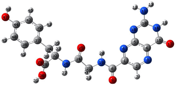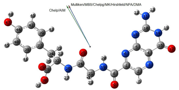 | Comparação entre métodos para determinação de cargas atômicas em sistemas moleculares: a molécula n-{n-(pterina-7-il)carbonilglicil}-l-tirosina (nnpt) Comparison between atomic charge methods for molecular systems: the n-{n-(pterin-7-yl)carbonylglycyl}-l-tyrosine (nnpt) molecule |