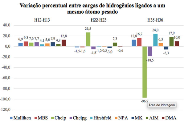 ![]() Figura 5. Comparação das cargas de átomos de hidrogênio selecionados