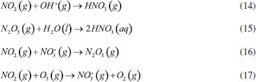| Gases de nitrogênio reativo como precursores do aerossol atmosférico: reações de formação, processos de crescimento e implicações ambientais Reactive nitrogen gases as precursors of atmospheric aerosol: formation reactions, growth processes and environmental implications |