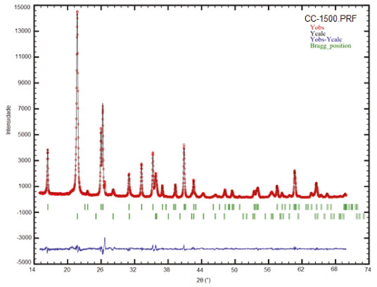 ![]() Figura 6. Diferenças entre os difratogramas, calculado e observado da amostra CC-1500