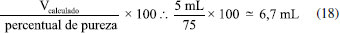 PREPARO DA SOLUÇÃO Após obtenção dos valores de concentração, bem como das massas e volumes de reagentes necessários, a próxima etapa envolve o preparo da solução propriamente dita. Primeiramente, é importante ressaltar que o usuário deve planejar corretamente, revisar o procedimento e o seguir cuidadosamente. Além de utilizar vidrarias e demais instrumentos adequados, equipamentos de proteção individual (EPIs) e proceder com atenção e cautela, a fim de garantir que o procedimento seja realizado com segurança.27 Em seguida, as massas previstas dos reagentes sólidos devem ser pesadas corretamente em uma balança analítica e os volumes devem ser transferidos através de uma pipeta volumétrica ou automática devidamente calibrada. Lembre-se que, para evitar acidentes, os ácidos devem ser adicionados à água ou às bases, e não o contrário. Uma vez solubilizados e adicionados todos os reagentes a um balão volumétrico adequado, deve-se verificar o pH e por fim completar o volume com água deionizada. Recomenda-se a verificação do pH da solução recém preparada em pHmetro contendo eletrodos para soluções aquosas, de acordo as especificações de utilização e manutenção descritas pelo fabricante. Note que pode haver sutis diferenças entre o valor de pH registrado no potenciometro e o almejado, devido às incertezas associadas principalmente às constantes de equilíbrio, à temperatura do ambiente e aos reagentes voláteis, higroscópios e de pureza desconhecida. Lembre-se, ainda, que medidas potenciométricas de soluções muito ácidas (pH em torno de 1) bem como soluções muito alcalinas (pH em torno de 13) também têm um erro associado, visto que nessas concentrações os sítios da superfície da membrana externa do eletrodo estão saturados (com íons H+ ou outro cátion monovalente, como o Na+ no caso de soluções altamente alcalinas), consequentemente, nesses casos não é possível fazer uma medição precisa do pH.3,4 Uma vez verificado adequadamente o pH da solução, se necessário, o usuário pode ajustá-lo pela adição de alíquotas de soluções concentradas de ácidos ou bases fortes.3
