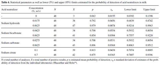 | Detection of acid neutralizers in fraudulent milk: full validation of a classical qualitative method |