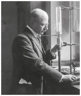 ![]() Figura 1. Fritz Haber em pé no laboratório fazendo um teste de chama, 1905. Fonte: Arquivos da Sociedade Max Planck, Berlim, Foto: I/3, autor desconhecido