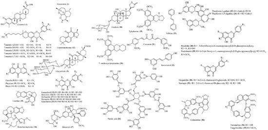 ![]() Figure 2. Chemical structures of secondary metabolites as potential natural products for therapeutic application against COVID-19