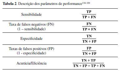 A análise dos dados foi conduzida utilizando duas abordagens multivariada, sendo: i) uma não supervisionada e exploratória, a PCA; e ii) uma abordagem supervisionada e classificatória, o método SIMCA. A PCA explora as características dos valores introduzidos, promovendo a redução da dimensionalidade do sistema, organizando as amostras de acordo com as similaridades naturais.114 A SIMCA, nesse caso, foi utilizada para auxiliar a verificar se a classificação exploratória feita previamente pode embasar um modelo supervisionado, sendo possível mensurar os erros de classificação.91,108 Como pré-tratamento, os dados foram centrados na média para eliminar o erro aleatório, uma vez que foram medidos a partir da mesma técnica.97 As análises foram desenvolvidas no programa Pirouette v.4.5 (Infometrix).115 Como forma de avaliar as respostas da classificação realizadas por SIMCA, utilizou-se a análise ROC (Receiver Operating Characteristics). Essa abordagem possibilita avaliar a sensibilidade (taxa de positivos verdadeiros) e especificidade (taxa de negativos verdadeiros). Comumente, a análise ROC relaciona-se a respostas médicas, porém, tem sido utilizada para outras áreas como a química.97,116,117 Para essa avaliação foi utilizada a tabela de contingência 2x2 (Tabela 1). A codificação indicada nas Tabelas 1 e 2 foram verdadeiro-positivo (TP - true-positive), falso-positivo (FP - false positive), falso-negativo (FN - false-negative) e verdadeiro-negativo (TN - true negative). As equações utilizadas para obtenção das respostas foram agrupadas na Tabela 2.118-120