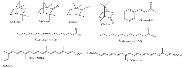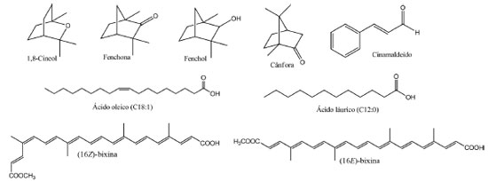 ![]() Figura 7. Constituintes majoritários das matérias-primas naturais utilizadas na fabricação dos bioprodutos