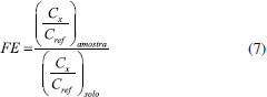 Os principais elementos encontrados nas partículas, considerando os três tamanhos avaliados, foram Fe e Al. As maiores concentrações para esses elementos foram observadas por Quitério et al.61 em em Santa Cruz, bairro do Rio de Janeiro que abriga um complexo siderúrgico. As emissões das indústrias próximas aos locais de amostragem podem ter contribuído para concentrações muito elevados desses elementos nas PTS, assim como a ressuspensão da poeira do solo provocada pelo tráfego de caminhões utilizados pelas companhias industriais. Em outros estudos realizados em áreas não industriais, tais elementos também apareceram como principais componentes do MP, juntamente com Zn. Esses elementos fazem parte da composição do solo, o que explica suas altas concentrações nas PTS, uma vez que partículas provenientes da ressuspensão do solo tendem a possuir diâmetros maiores.3,15 Alguns estudos revelam a importância do Zn na composição do MP do Rio de Janeiro pois, além de estar presente na composição do solo este elemento também pode estar associado às emissões veiculares, queima de combustível fóssil e emissões geradas por atividades industriais.57,104 Dentre os elementos minoritários destacam-se Cr, Cu, Pb e Cd. As maiores concentrações de Cr e Pb foram observadas por Quitério et al.61 nas PTS coletadas em Santa Cruz e as de Cd por Quitério et al.62 em Nova Iguaçu. Os autores atribuíram a fonte desses elementos às atividades industriais existentes nas regiões de amostragem, como siderurgia e metalurgia. Para corroborar a origem antropogênica de tais elementos, foi calculado o fator de enriquecimento com relação à composição do solo, encontrando-se valores de até 1200, o que indica que esses elementos são majoritariamente de origem antropogênica. A maior concentração de Cu foi observada por Gioda et al.7 em MP10 coletado em Duque de Caxias, entretanto, valores similares foram observados também no centro do Rio de Janeiro, local que apresentou maior média anual para esse elemento dentre os locais de monitoramento desse estudo. Os autores atribuem a origem de Cu no centro do Rio de Janeiro à queima de óleo e combustível e às emissões provenientes do tráfego veicular, já que apresentou boas correlações com Pb e Cd, mas em Duque de Caxias a emissão de Cu também pode ser atribuída aos processos metalúrgicos. Alguns elementos metálicos podem ser associados aos danos à saúde humana, sendo classificados como substâncias carcinogênicas. Embora a regulação da concentração dessas espécies químicas no ar não seja muito comum, a exceção do Pb, a comissão europeia e alguns outros países estabelecem limites para a concentração dos elementos Cr, Ni, Cd e As. De acordo com a Resolução do CONAMA 491/2018, o limite da média anual de concentração de Pb medido em PTS deve ser de 0,5 μg m-3. Gioda et al.60 e Quitério et al.61 encontraram concentrações até 6 vezes superiores ao limite em estudos realizados em Volta Redonda (1995 - 1999) e Santa Cruz (2001 - 2002), respectivamente. É importante ressaltar que, de acordo com a legislação, o monitoramento de Pb é indicado para regiões com potencial de emissão. Como esses dois locais apresentam importantes complexos siderúrgicos, os valores encontrados indicam que esses empreendimentos industriais contribuíam para emissões que colocava a população da região em risco. Um estudo realizado posteriormente na região de Volta Redonda (2004 - 2005) por Loyola et al.76 registrou concentrações de Pb até 35 vezes menores que o limite atual de Pb em PTS. Mateus et al.18 encontraram em Santa Cruz (2010 - 2011) concentrações de Pb até 50 vezes menores do que o padrão de qualidade do ar. A redução na concentração de Pb nessas regiões industriais indica que a modernização das indústrias contribuiu para o controle das emissões. A comissão europeia estabelece valores limites para a concentração de Ni (20 ng m-3) e Cd (5 ng m-3). O estudo desenvolvido por Gioda et al.60 em Volta Redonda revela concentrações de Ni e Cd de 1,5-2,8 vezes superiores às recomendações europeias tanto em PTS quanto em MP10. Para Cd, também foram encontradas, por Quitério et al.,62 concentrações quase 100 vezes maiores em Nova Iguaçu. Fator de enriquecimento do MP coletado no Rio de Janeiro Para avaliar a influência das contribuições naturais e antropogênicas na composição do MP, alguns estudos fizeram uso do fator de enriquecimento. Paulino et al.59 verificaram que o MP emitido no município de Duque de Caxias apresentou percentuais de Fe, Zn, Ca e Cu mais elevados que os verificados para a crosta terrestre, indicando que atividades antropogênicas contribuíram para a presença de tais elementos nas partículas, principalmente o tráfego de carros e as indústrias petroquímicas presentes nessa região. Maia et al.58 também verificaram enriquecimento desses elementos na mesma região e observaram, ainda, enriquecimento de Ni. Além da contribuição das atividades industriais e queima de combustíveis por veículos, alguns desses elementos podem ser emitidos por desgastes de peças dos carros, como os pneus e as lonas de freio.58,119 Quitério et al.62 encontraram FE altos para Zn, Cu, Cd e Pb no estudo realizado próximo às siderúrgicas de Santa Cruz, indicando maior contribuição de fontes antropogênicas para esses elementos. Foram encontrados ainda valores moderados para Mn e Ni, o que indica que as fontes naturais e antropogênicas apresentam contribuições similares. No estudo realizado por Loyola et al.56 no túnel André Rebouças, situado entre as zonas sul e norte da cidade do Rio de Janeiro, foi verificado enriquecimento muito elevado para Zn e Cu, cerca de 10 vezes maior que o observado em outros estudos. Sabe-se que a dispersão de poluentes em túneis é dificultada devido a contínua emissão, principalmente em túneis longos como o Túnel Rebouças que 