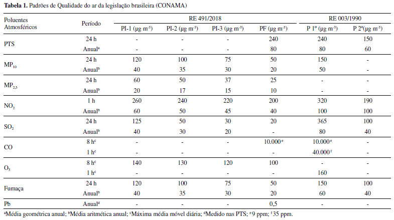 LEGISLAÇÃO BRASILEIRA No Brasil, a preocupação com a qualidade do ar iniciou a partir da década de 1970, em um período de intenso crescimento industrial. A primeira legislação brasileira que estabeleceu padrões de qualidade do ar no Brasil foi a Portaria Minter 231/1976, que considerava os poluentes: Partículas em Suspensão, SO2, CO e Oxidantes Fotoquímicos. Na década de 1980 ocorreu crescimento da frota automobilística, o que estimulou o Conselho Nacional do Meio Ambiente (CONAMA) a criar a Resolução CONAMA 18/1986 que visava o controle das emissões veiculares. Posteriormente surgiu a necessidade de um maior controle da poluição atmosférica, por isso em 1989 o CONAMA criou o Programa Nacional de Controle da Qualidade do Ar (PRONAR), por meio da Resolução 05/1989. O PRONAR visava o desenvolvimento sustentável por meio da elaboração de instrumentos de controles, tais como estabelecimento de limites de emissão, padrões de qualidade do ar e inventários de fontes de emissão. Após a criação do PRONAR, a portaria Minter 231/1976 foi revogada pela Resolução CONAMA 003/1990 que, além de manter os padrões já estabelecidos, incluía outros poluentes, considerando informações científicas mais recentes. Essa resolução estabeleceu padrões de qualidade do ar para PTS, MP10, SO2, CO, NO2 e fumaça. A Resolução 003/1990 considerava dois valores de concentração para cada poluente: i) padrão primário (P 1o), acima do qual o poluente poderia causar risco à saúde e ii) padrão secundário (P 2o), abaixo do qual são previstos efeitos mínimos à saúde e ao meio ambiente. Essa resolução vigorou por quase 30 anos sem revisão, embora estudos científicos já apontassem a importância do monitoramento de outros poluentes, além da redução dos limites de emissão. Apesar das evidências científicas, os padrões que permaneceram em vigor por décadas no Brasil estavam muito defasados se comparados aos padrões recomendados pela OMS e estabelecidos pela USEPA. Com relação ao MP, a legislação brasileira recomendava o monitoramento de PTS e MP10 e considerava como padrões de qualidade do ar concentrações muito superiores aos dessas agências. Os documentos mais recentes da OMS e USEPA, que são de 2005, já incluíam MP2,5 e apresentavam concentrações para MP10 até três vezes menores do que a legislação brasileira. A publicação de dados científicos e revisões feitas por agências ambientais internacionais com estabelecimento de limites mais restritivos estimularam a revisão da legislação brasileira. Após um longo período de elaboração, em 2018, a Resolução 003/1990 foi substituída pela resolução CONAMA 491/2018 que apresenta padrões mais restritivos e inclui novos poluentes, como o MP2,5 e Pb em PTS.71,72 Esse documento foi elaborado com base nos valores de referência recomendados em 2005 pela OMS. Foram estabelecidos três padrões intermediários (PI) de qualidade do ar e um Padrão Final (PF), que devem ser adotados sequencialmente, sendo os PFs equivalentes aos valores sugeridos pela OMS. A criação dos PI foi necessária devido à grande diferença entre os padrões antigos e os padrões finais previstos na Resolução 491/2018. Tais valores visam permitir as agências ambientais estaduais e os responsáveis pelas emissões se adequarem aos novos padrões de qualidade do ar mais restritivos. A partir da data de promulgação da Resolução 491/2018 o PI-1 foi adotado e a progressão entre os PI até o PF deverá ocorrer de acordo com planos de controle de emissão elaborados pelas agências ambientais estaduais. Até o momento nenhuma delas divulgou o planejamento para fazer a progressão entre os PI nem o prazo para adoção do PF. Com a atualização dos padrões de qualidade do ar, a legislação brasileira passou a apresentar limites para as três frações de MP. O guia da OMS de 2005 deixou de estabelecer limites para PTS, dessa forma, os valores para PTS não foram alterados na Resolução 491/2018. Os limites para MP10 sofreram grande redução (de 20% a 30%), comparado ao PF. Essa defasagem entre os valores das duas resoluções pode ser atribuída ao longo tempo sem ocorrência de atualização dos padrões. Embora exista uma lei que estabeleça padrões para a qualidade do ar, a rede nacional de monitoramento é bem reduzida. De acordo com o Instituto de Energia e Meio Ambiente (IEMA), em 2018 apenas 9 unidades federativas, dentre as 27, apresentavam programas para monitoramento da qualidade do ar, que são gerenciados por órgãos estaduais, à exceção da Bahia, onde o monitoramento é realizado por empresas privadas.73 Além do número reduzido de estações de monitoramento, os dados emitidos pelas agências ambientais revelam que nem todos os padrões estabelecidos na lei são monitorados em todas as estações. Muitas apresentam descontinuidade no funcionamento, além da baixa representatividade dos dados, o que compromete o diagnóstico da poluição do ar.51 A Tabela 1 apresenta os padrões de qualidade do ar estabelecidos pelas resoluções do CONAMA de 1990 e 2018. Na nova resolução verifica-se a inclusão de limites para MP2,5, partículas que representam maior risco a saúde devido ao seu maior poder de penetração no sistema respiratório e maior relação com emissões antropogênicas. Além disso, pode ser verificado que, pela primeira vez, a legislação considera a composição das partículas ao estabelecer limites de concentração de Pb nas PTS em áreas específicas, de acordo com as características das fontes de emissão. A necessidade de monitoramento desse parâmetro deve ser definida pelo órgão ambiental competente. A USEPA foi a agência pioneira em estabelecer padrões para a concentração de Pb no material particulado, estabelecendo, em 1978, a concentração de 1,5 μg m-3. Ao longo dos anos, o padrão para Pb foi revisado, chegando ao atual valor de 0,5 μg m-3, que foi usad