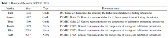Departamento de Química, Universidade Federal de Viçosa, 36570-000 Viçosa - MG, Brasil Recebido em 26/11/2020 *e-mail: annaluisarmiguel@gmail.com Quality is an increasingly present concept nowadays, so meeting the customers' needs, who buy and use products and hire services, becomes essential. For laboratories, the concept is applied to the reliability and traceability of the results produced and presents itself not only to meet the customer's needs, but also to allow the signing of agreements in the international trade. The concept of Quality in a laboratory can be carried out from the elaboration of a Quality Management System (QMS). To this end, the normative document ISO/IEC 17025, internationally accepted, has been changing over the years aimed at instructing the elaboration of a management system which proves the technical capacity of testing and calibration laboratories and guides the generation of reliable results. The document is in its third version as a standard, the most current one published in 2017, and it presents requirements to achieve the proposed objective and the quality assurance. In the face of the importance of these concepts and the unquestionable need of laboratories to provide reliable and traceable results, this article presents the norm history and its most recent changes. Its intent is support laboratories whose objective is to implement a QMS according to this normative reference. INTRODUCTION Testing and calibration laboratories are organizations which provide measurement results and often important decisions are based on these. According to the great responsibility of these laboratories, being able to assure the quality of their service and the reliability of the reported results is important. In order to demonstrate their competence, laboratories through-out the world use the document ISO/IEC 17025. This document proposes a Quality Management System (QMS) that ensure the quality control and metrological traceability. Besides, this document facilitates access to world markets and provides domestic and international socio-economic benefits.1 For the sake of making the knowledge about ISO/IEC 17025 increasingly more accessible, this article presents the concept of Quality, this concept applied to laboratories over time, the ISO/IEC 17025 history and the QMS proposed by the new version of this document, published in 2017. Definition of Quality On daily life, the search for products and services that fulfil the customers' expectations is always present. In this way, the presence of Quality is noticeable, and its absence, readily perceived. Quality impacts the success of organizations and the lives of every person in a positive manner. Despite being easily identified, perceptions on Quality do not rely on a clear definition of what quality is.2 Several authors have been working on the concept of Quality. For illustrative purposes, Berhe and Gidey3 states that the quality of a product is the capacity of such product to meet expectations from both market and customer. Quality has also been defined in the perspective of services. Once that service is not a physical matter and, to a certain extent, is intangible, Quality has, in this context, two approaches to be assessed: technical Quality, which expresses the results delivered to the customer, and functional Quality, which expresses the quality of processes that the customers had to undergo to reach the result.2 Such study about the concepts of Quality and their development are useful to define what Quality Management more precisely is, establishing it as a field of knowledge with its own line of research. Quality Management is considered a management system which seeks improvement for products and processes by using the organization's self-knowledge. Its main objectives are satisfying the customers and meeting their expectations.4 Quality in laboratories Just like other organizations, a laboratory must be concerned in satisfying customers and their expectations by delivering both reliable results and a good customer service. Additionally, it must work to assure the quality of its services.4 Such concern is shown by Staats,5 who declares that, in analytical chemistry, it is not enough just being able to analyse information in order to be of recognized quality. In this case, quality assurance is unavoidable in a high-level, complex market. The author also stresses the importance of a quality system which can assure suitable information management, the latter contributing for reliability and traceability of data. On the same topic, Christelsohn and Meyer6 state how the laboratory's concern for its customers is important and stress that quality management systems are important tools for achieving such goal. The researchers analysed the advantages and disadvantages regarding the prevailing norms and pointed out a robust Quality Management System (QMS) which emphasized more on the customer, the ISO 9001. They also mentioned the norm EN 45001, responsible for proving the technical competence of a laboratory. In such a way, the laboratory's need to assure the quality of its services to its customers is noticeable, regarding both the reliability of its results and the customer service, thus making the origin of a QMS concept very appealing. According to Olivares,4 QMS is defined as systems put in place seeking to make sure products with the same characteristics and services be delivered in a standardized form, thus ensuring the customers' interests and meeting their expectations. For laboratories, one of the main QMS is the norm ISO/IEC 17025, which was developed by the ISO (International Organization for Standardization) and by IEC (International Electrotechnical Commission). The norm ISO/IEC 17025, whose history shall be detailed further on the text, was adopted by many laboratories worldwide. Since then, conclusions were drawn after the adoption of the QMS proposed by the norm, as seen in the work of Dizadji e Ankl