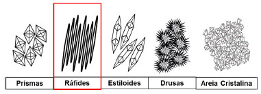 ![]() Figura 6. Formato dos cristais de oxalato de cálcio encontrados em diversas plantas