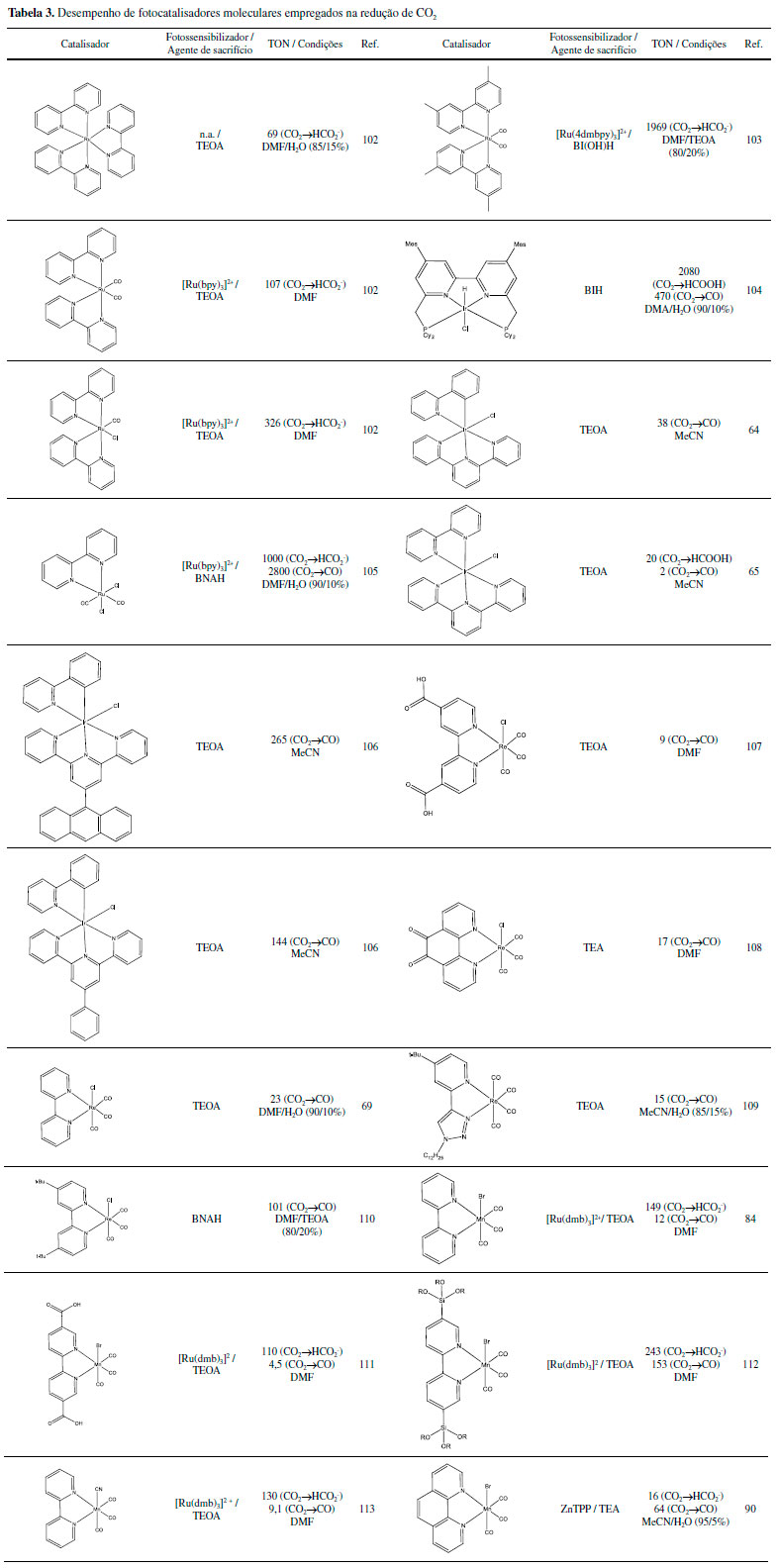REFERÊNCIAS 1. Roe, S.; Streck, C.; Obersteiner, M.; Frank, S.; Griscom, B.; Drouet, L.; Fricko, O.; Gusti, M.; Harris, N.; Hasegawa, T.; Hausfather, Z.; Havlík, P.; House, J.; Nabuurs, G.-J.; Popp, A.; Sánchez, M. J. S.; Sanderman, J.; Smith, P.; Stehfest, E.; Lawrence, D.; Nat. Clim. Change 2019, 9, 817. 2. Peters, G. P.; Andrew, R. M.; Canadell, J. G.; Friedlingstein, P.; Jackson, R. B.; Korsbakken, J. I.; Le Quéré, C.; Peregon, A.; Nat. Clim. Change 2020, 10, 3. 3. Moreira, H. M.; Giometti, R.; Contexto Internacional 2008, 30, 9. 4. Sumaila, U. R.; Tai, T. C.; Lam, V. W. Y.; Cheung, W. W. L.; Bailey, M.; Cisneros-Montemayor, A. M.; Chen, O. L.; Gulati, S. S.; Sci. Adv. 2019, 5, eaau3855. 5. Crippa, M.; Oreggioni, G.; Guizzardi, D.; Muntean, M.; Schaaf, E.; Lo Vullo, E.; Solazzo, E.; Monforti-Ferrario, F.; Olivier, J. G. J.; Vignati, E.; European Commission, Joint Research Centre, Fossil CO2 and GHG emissions of all world countries; Publications Office of the European Union, 2019. 6. Análise de conjuntura dos biocombustíveis - ano 2019 https://www.epe.gov.br/pt/publicacoes-dados-abertos/publicacoes/analise-de-conjuntura-dos-biocombustiveis-2019, acessada em Março 2021. 7. De Oliveira, M. E. D.; Vaughan, B. E.; Rykiel, E. J.; BioScience 2005, 55, 593. 8. Yu, K. M. K.; Curcic, I.; Gabriel, J.; Tsang, S. C. E.; ChemSusChem 2008, 1, 893. 9. Centi, G.; Quadrelli, E. A.; Perathoner, S.; Energy Environ. Sci. 2013, 6, 1711. 10. Gielen, D.; Boshell, F.; Saygin, D.; Nature Mater 2016, 15, 117. 11. Wang, Q.; Domen, K.; Chem. Rev. 2020, 120, 919. 12. Ulmer, U.; Dingle, T.; Duchesne, P. N.; Morris, R. H.; Tavasoli, A.; Wood, T.; Ozin, G. A.; Nature Communications 2019, 10, 1. 13. Chang, X.; Wang, T.; Gong, J.; Energy Environ. Sci. 2016, 9, 2177. 14. Du, C.; Wang, X.; Chen, W.; Feng, S.; Wen, J.; Wu, Y. A.; Mater. Today Adv. 2020, 6. 15. Romero Cuellar, N. S.; Scherer, C.; Kaçkar, B.; Eisenreich, W.; Huber, C.; Wiesner-Fleischer, K.; Fleischer, M.; Hinrichsen, O.; J. CO2 Util. 2020, 36, 263. 16. Ding, P.; Jiang, T.; Han, N.; Li, Y.; Mater. Today Nano 2020, 10. 17. Nguyen, V. H.; Nguyen, B. S.; Jin, Z.; Shokouhimehr, M.; Jang, H. W.; Hu, C.; Singh, P.; Raizada, P.; Peng, W.; Shiung Lam, S.; Xia, C.; Nguyen, C. C.; Kim, S. Y.; Le, Q. Van; Chem. Eng. J. 2020, 402, 126184. 18. Ma, Y.; Wang, Z.; Xu, X.; Wang, J.; Chin. J. Catal. 2017, 38, 1956. 19. Torres, J. A.; Nogueira, A. E.; Da Silva, G. T. S. T.; Lopes, O. F.; Wang, Y.; He, T.; Ribeiro, C.; J. CO2 Util. 2020, 35, 106. 20. da Silva, G. T. S. T.; Nogueira, A. E.; Oliveira, J. A.; Torres, J. A.; Lopes, O. F.; Ribeiro, C.; Appl. Catal., B 2019, 242, 349. 21. Gattrell, M.; Gupta, N.; Co, A.; J. Electroanal. Chem. 2006, 594, 1. 22. Yin, W.-J.; Wen, B.; Ge, Q.; Li, X.-B.; Teobaldi, G.; Liu, L.-M.; Dalton Trans. 2020, 49, 12918. 23. Shen, H.; Peppel, T.; Strunk, J.; Sun, Z.; Sol. RRL 2020, 4, 1900546. 24. Zhang, S.; Fan, Q.; Xia, R.; Meyer, T. J.; Acc. Chem. Res. 2020, 53, 255. 25. Horváth, I.; Kiss, G.; Cook, R.; J. Am. Chem. Soc. 1998, 2, 3133. 26. Morris, A. J.; Meyer, G. J.; Fujita, E.; Acc. Chem. Res. 2009, 42, 1983. 27. Prado, F.; Sousa, S.; Machado, A. E.; Patrocinio, A. O.; J. Braz. Chem. Soc. 2016. 28. Sousa, S. F.; Sampaio, R. N.; Barbosa Neto, N. M.; Machado, A. E. H.; Patrocinio, A. O. T.; Photochem. Photobiol. Sci. 2014, 13, 1213. 29. Müller, A. V.; Gonçalves, M. R.; Ramos, L. D.; Polo, A. S.; Frin, K. P. M.; Quim. Nova 2017, 40, 200. 30. Steinlechner, C.; Roesel, A. F.; Oberem, E.; Päpcke, A.; Rockstroh, N.; Gloaguen, F.; Lochbrunner, S.; Ludwig, R.; Spannenberg, A.; Junge, H.; Francke, R.; Beller, M.; ACS Catalysis 2019, 9, 2091. 31. Takeda, H.; Koike, K.; Inoue, H.; Ishitani, O.; J. Am. Chem. Soc. 2008, 130, 2023. 32. Pellegrin, Y.; Odobel, F.; C. R. Chim. 2017, 20, 283. 33. Souza, S. F.; Patrocinio, A. O. T.; Quim. Nova 2014, 37, 886. 34. Manbeck, G. F.; Muckerman, J. T.; Szalda, D. J.; Himeda, Y.; Fujita, E.; J. Phys. Chem. B 2015, 119, 7457. 35. Smieja, J. M.; Kubiak, C. P.; Inorg. Chem. 2010, 49, 9283. 36. Grills, D. C.; Matsubara, Y.; Kuwahara, Y.; Golisz, S. R.; Kurtz, D. A.; Mello, B. A.; J. Phys. Chem. Lett. 2014, 5, 2033. 37. Li, X.; He, X.; Liu, X.; He, L.-N.; Sci. China Chem. 2017, 60, 841. 38. Tanaka, K.; Morimoto, M.; Tanaka, T.; Chem. Lett. 1983, 12, 901. 39. Ishida, H.; Tanaka, K.; Tanaka, T.; Chem. Lett. 1985, 14, 405. 40. Ishida, H.; Tanaka, K.; Tanaka, T.; Organometallics 1987, 6, 181. 41. Ishida, H.; Tanaka, H.; Tanaka, K.; Tanaka, T.; J. Chem. Soc., Chem. Commun. 1987, 131. 42. Nagao, H.; Mizukawa, T.; Tanaka, K.; Inorg. Chem. 1994, 33, 3415. 43. Nakajima, H.; Tanaka, K.; Chem. Lett. 1995, 24, 891. 44. Mizukawa, T.; Tsuge, K.; Nakajima, H.; Tanaka, K.; Angew. Chem., Inter. Ed. 1999, 38, 362. 45. Elgrishi, N.; Chambers, M. B.; Wang, X.; Fontecave, M.; Chem. Soc. Rev. 2017, 46, 761. 46. Chardon-Noblat, S.; Collomb-Dunand-Sauthier, M.-N.; Deronzier, A.; Ziessel, R.; Zsoldos, D.; Inorg. Chem. 1994, 33, 2961 47. Wang, W.-H.; Himeda, Y.; Muckerman, J. T.; Manbeck, G. F.; & Fujita, E.; Chem. Rev. 2015, 115, 12936. doi:10.1021/acs.chemrev.5b00197 48. Gonell, S.; Massey, M. D.; Moseley, I. P.; Schauer, C. K.; Muckerman, J. T.; Miller, A. J. M.; J. Am. Chem. Soc. 2019, 141, 6658. 49. Pugh, J. R.; Bruce, M. R. M.; Sullivan, B. P.; Meyer, T. J.; Inorg. Chem. 1991, 30, 86. 50. Chen, Z. F.; Concepcion, J. J.; Brennaman, M. K.; Kang, P.; Norris, M. R.; Hoertz, P. G.; Meyer, T. J.; Proc. Natl. Acad. Sci. U. S. A. 2012, 109, 15606. 51. Tamaki, Y.; Tokuda, K.; Yamazaki, Y.; Saito, D.; Ueda, Y.; Ishitani, O.; Front. Chem. 2019, 7, 327. 52. Leite, M.; Duarte, L.; da Silva David, A. L. O.; Carlos, H.; Quim. Nova 2017, 40, 200. 53. Fujita, E.; Coord. Chem. Rev. 1999, 185-186, 373. 54. Church, T. L.; Andersson, P. G.; Coord. Chem. Rev. 2008, 252, 513. 55. Hanasaka, F.; Fujita, K.; Yamaguchi, R.; Organometallics 2004, 23, 1490. 56. Fujita, K.; Li, Z.; Ozeki, N.; Yamaguchi, R.; Tetrahedron Lett. 2003, 44, 2687. 57. Herskovitz, T.; 