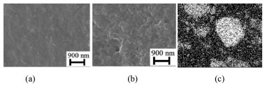 ![]() Figura 2.Estudos morfológicos: (a) MEV do revestimento PAni; (b) MEV do revestimento PAni / n-TiO2; e (c) mapeamento de n-TiO2 na amostra PAni / n-TiO2 22