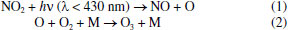 OZÔNIO NA TROPOSFERA Diversos oxidantes podem ser encontrados no ar ambiente, sendo os principais: O3, H2O2, HO, HO2, NO3 e nitrato de peroxiacetil (PAN). O O3 está envolvido diretamente ou indiretamente em diversas cadeias de oxidação primárias que ocorrem na atmosfera para formação desses oxidantes.9 A geração do ozônio na troposfera ocorre através da interação de NO2 com a radiação eletromagnética (entre 295 e 430 nm), formando óxido nítrico (NO) e oxigênio atômico (O), que ao reagir com oxigênio molecular (O2) produz O3, conforme equações (1) e (2), em que M é uma molécula que absorve o excesso de energia (geralmente N2 ou O2).24,25 ![]() Em atmosferas limpas, o NO2 é formado por meio da reação de oxidação do NO pelo O3, de modo que sua fotodecomposição (equação 1), a formação do O3 (equação 2) e seu posterior consumo, através da reação com NO (equação 3), resultam em um estado estacionário.26,27 ![]() O aumento na concentração de O3 na troposfera deve-se à presença de quantidades significativas de NOx e COVs, os quais são emitidos a partir de fontes antrópicas diversas e também são liberados de forma natural pela vegetação. Esses compostos competem com o ozônio na oxidação do NO para formação do NO2.28 Como resultado, o equilíbrio fotoestacionário é quebrado e a concentração do ozônio aumenta, principalmente quando a relação entre COVs/NOx tende a excessos de COVs.29 O O3 formado promove diversas cadeias de reações atmosféricas. A principal reação é iniciada pela fotólise do ozônio em presença de vapor d'água, gerando radicais hidroxil (equação 5).24,28 ![]() A contribuição dos radicais HO na oxidação dos COVs, que resulta na conversão do NO a NO2 e, consequentemente, no incremento na concentração de O3, pode ser descrita em um modelo simplificado na sequência de reações radicalares (equação 6). ![]() Os COVs (RH) entram na cadeia de oxidação pela reação com os radicais HO, iniciadores das reações que, posteriormente, resultam na formação do O3. Os radicais orgânicos formados (R) geram radicais peróxi (RO2 e HO2), os quais são responsáveis pela oxidação do NO a NO2. Concentrações altas de COVs resultam na maior produção de O3 na troposfera, pois os radicais peróxi formados atuam como oxidantes de NO, aumentando, desta forma, a concentração da molécula precursora de O3 na troposfera (NO2) e minimizando a principal via de eliminação do ozônio formado (equação 3), que envolve a conversão do NO a NO2.9 O aumento do ozônio na troposfera é consequência dessas reações e produto da emissão indiscriminada de COVs e NO por atividades antrópicas. Estudos sobre o ozônio troposférico relatam que aos fins de semana, devido ao menor fluxo de veículos movidos a diesel (reconhecido emissor de NOx), ocorre um aumento nas concentrações de O3, o que mostra o papel importante do NO no consumo de ozônio e formação do NO2.29-31 Intrusões estratosféricas de ozônio na troposfera também são bem documentadas na literatura, podendo atingir o solo, elevando substancialmente a sua concentração no ambiente.32,33 O resultado é que os padrões de qualidade do ar podem ser ultrapassados em um curto intervalo de tempo. Esses fenômenos não são difíceis de acontecer e são mais frequentes em locais de altitude elevada.33