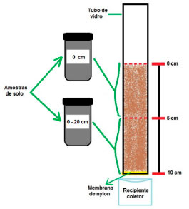 ![]() Figura 1. Esquema de construção de colunas de solo para o estudo do comportamento de agrotóxicos