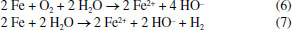 Dentre os processos físicos, destacam-se aqueles fundamentados em ativação térmica, por radiação UV e ultrassom, nos quais a cisão homolítica da molécula de persulfato leva à formação de dois equivalentes de radical sulfato (Equação 1). ![]() A energia de ativação para essa reação é da ordem de 100 kJ mol-1,16 o que faz com que o processo se mostre mais eficiente com o uso de temperaturas superiores a 60 °C,17 comprimentos de onda na região UVC,18 e frequências ultrassônicas superiores a 300 kHz.19 Dos processos químicos em fase homogênea, destaca-se a ativação alcalina, usualmente envolvendo reações em pH entre 11 e 12.4 Nessas condições, a hidrólise do persulfato leva à geração do íon hidroperoxila (Equação 2), que reage com persulfato em uma reação que transfere um elétron, formando radical sulfato e ânion radical superóxido (Equação 3). ![]() Em meio alcalino, espécies fenólicas também podem reduzir o persufato, de acordo com o processo proposto por Ahamad et al.20 Em função dessa ativação ser observada em pH 12, mas não em pH 8, sugere-se que a reação necessariamente envolve a formação preliminar de fenolatos (Equação 4).21 ![]() Íons de metais de transição, como Fe, Co, Mn, Cu, Ni e Zn, também permitem a ativação de persulfato em meio homogêneo,22,23 de acordo com a equação genérica apresentada a seguir (Equação 5). Particular importância mostram os processos viabilizados por Fe2+, que apresenta elevada eficiência como ativador, menor toxicidade e baixo custo relativo. ![]() De forma análoga, ferro metálico24 e óxidos de ferro25 podem catalisar a decomposição de persulfato, via processos heterogêneos bastante utilizados na remediação ambiental. Em meio ácido, ferro metálico pode formar Fe2+ na presença (Equação 6) ou ausência de oxigênio (Equação 7), o que viabiliza a geração de radical sulfato de acordo com a expressão apresentada na Equação 5. ![]() Embora esse mecanismo seja bem aceito, existem argumentos que apontam para um processo heterogêneo que não envolve a participação de formas solúveis de ferro. Nesse caso, o processo envolve a transição direta de um elétron do Fe metálico, ou de Fe2+ previamente adsorvido, para a molécula de persulfato, como mostrado na Equação 8.26 ![]() A ativação heterogênea de persulfato também pode ser catalisada por óxidos metálicos, sendo particularmente relevante o uso de óxidos e oxi-hidróxidos de ferro, como magnetita, hematita, goethita e ferrihidrita.25 Com óxidos que contém apenas Fe (III), admite-se uma reação preliminar que leva à geração de Fe (II) e de radical persulfato (Equação 9), seguida da reação de decomposição que leva à geração de radical sulfato (Equação 10). ![]() De acordo com Wang e Wang,14 em processos heterogêneos envolvendo materiais a base de carbono (C), como carvão ativado, nanotubos de carbono e grafeno, a ativação de persulfato se dá pela transferência de elétrons da rede de carbono sp2 ou de grupos funcionais oxigenados, conforme representado na Equação 11. ![]() Entretanto, existem novos argumentos que apontam para reações não radicalares, viabilizadas por grupos que agem como bases de Lewis (ex. C=O)27 ou por lacunas que surgem da reação preliminar entre persulfato e o material carbonáceo.28