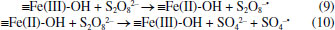 ![]() Figura 5. Representação das ativações hetero e homogênea de persulfato em processos mediados por óxidos de ferro