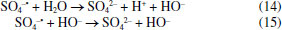 MECANISMOS DE REAÇÃO O íon persulfato pode reagir diretamente com alguns compostos orgânicos (CO), gerando radical sulfato (Equação 12) e radicais orgânicos (Equação 13) que propagam as reações de degradação.16 Entretanto, a principal via de degradação em sistemas ativados envolve a formação preliminar de radical sulfato, agente eletrofílico que pode reagir com moléculas orgânicas por abstração de hidrogênio, adição a duplas ligações ou transferência de elétrons. ![]() Em meio aquoso, entretanto, radical sulfato hidrolisa formando radical hidroxila (Equação 14), espécie que pode reagir com moléculas orgânicas por abstração de hidrogênio, adição a duplas ligações e substituição eletrofílica. Uma vez que a hidrólise é fortemente favorecida em meio alcalino (Equação 15), admite-se que radical sulfato seja predominante em meio ácido, enquanto radical hidroxila seja predominante em meio alcalino. ![]() Embora o uso de agentes sequestrantes de radicais permita evidenciar as espécies radicalares mais ativas no processo de degradação, é seguro afirmar que ambas as formas radicalares participam do processo. Estudos recentes de Yang et al.,29 entretanto, sugerem que radical hidroxila esteja principalmente envolvido em reações de abstração de hidrogênio e de adição, enquanto radical sulfato participe preferencialmente de reações de transferência envolvendo um elétron, como verificado em estudos de degradação de sulfonamidas. Recentemente, estudos teóricos sobre a degradação de poluentes orgânicos fenólicos por radicais hidroxila e sulfato foram realizados por Mei et al.30 Nesses estudos, a reatividade de 19 poluentes fenólicos em solução aquosa foi avaliada por meio da teoria do funcional de densidade, confirmando-se a transferência de um elétron como a principal via de reação do radical sulfato. Na Figura 3 são ilustradas essas diferenças mecanísticas, tomando fenol como exemplo e antecedentes reportados por Luo et al.31