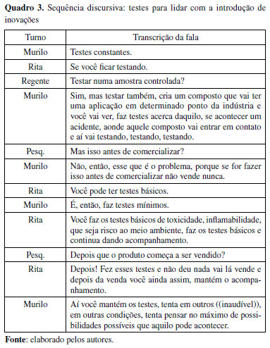 O caso dos CFCs ilustra aos estudantes o risco envolvido na produção das substâncias químicas. Diferentemente do tetraetilchumbo, cuja toxicidade era conhecida, os CFCs foram considerados na época como fluidos refrigerantes ideais, não tóxicos e não inflamáveis. Embora as propriedades dos CFCs tenham sido estudadas, a síntese química de uma nova substância resulta no paradoxo epistemológico do aumento do não-conhecimento.15 Esse paradoxo se refere ao desconhecimento de todas as demais propriedades não determinadas experimentalmente para a substância, em especial sua reatividade frente a todas as demais substâncias existentes na Natureza. No caso dos CFCs, não se cogitou que pudessem reagir com o ozônio estratosférico, não por uma possível má-fé, mas por desconhecimento. As consequências do uso do tetraetilchumbo e dos CFCs parecem ter convencido os estudantes a respeito dos riscos e incertezas inerentes às novas substâncias químicas. Isso pode ser observado pela preocupação manifestada pelos estudantes, e pela defesa da realização de testes contínuos como um meio para evitar ou minimizar possíveis danos desconhecidos decorrentes do uso de novas substâncias. A sequência discursiva mostrada no Quadro 3 exemplifica isso.