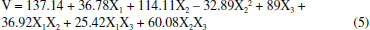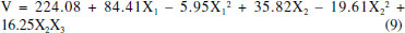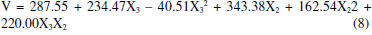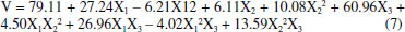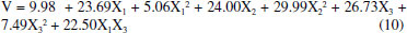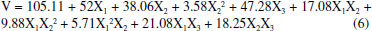 Eq. 5 represents the model obtained and Figure 3A presents the verification of the model fit. From Figure 3A it can be observed that the model given in Eq. 5 is adequate to describe the observed results as the observed values follow closely the tendency given in Eq. 5. ![]()