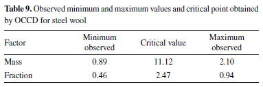 The model obtained for OCCD of the steel wool the presented an R2 of 0.9605 and the equation that represents it can be seen in Eq. 9 and the fit and randomness are given in Figure 4S A and 4S B, respectively. ![]() From the Pareto graph (Figure 10A) the linear mass (X1) was the most significant variable. The linear fraction (X2) was also significant. However, the quadratic term of fraction (X22) had a negative effect, just as the interaction between linear mass and linear fraction (X1X2) was not significant, a fact that can be observed in Table 7 (p > 0.05).