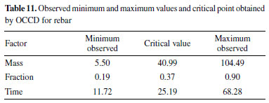 ![]() Figure 11. Results for OCCD experimental design with rebar: (A) Pareto graph, and (B) response surface for acid fraction vs. mass