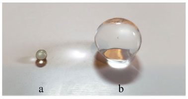 ![]() Figure 2. Images of WBs (a) before and (b) after swelling caused by water absorption