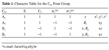 Instituto de Química, Universidade Federal do Rio de Janeiro, 21941-909, Rio de Janeiro - RJ, Brasil Recebido em: 11/05/2021 *e-mail: faria@iq.ufrj.br In this work, we call the attention to the ambiguity found in the literature when labeling vibrations and molecular orbitals as B1 and B2 for molecules belonging to the C2v point group as, for example, the water molecule. A survey of several books and some articles shows that this ambiguity comes from a long time ago and persists today, being a source of misunderstanding and a waste of time for students and teachers. It means that, in the case of the point groups Cnv, Dn, and Dnh (n = 2, 4, 6), it is very important to draw students' attention to this ambiguity that exists in the literature. It is unfortunate that the recommendation made by Mulliken, more than sixty years ago, to always place the water molecule in the yz plane, has not been followed. INTRODUCTION Symmetry and group theory are ubiquitous in chemistry. Their concepts are used to classify molecules in one of the 32-point groups, using the Schoenflies symbols. The irreducible representations of each point group are used to label molecular orbitals and molecular vibrations, following the Mulliken symbols, and help to determine the allowed and forbidden electronic and vibrational transitions, between many other applications.1,2 To be useful and to serve as a way of communication between researchers, teachers and students, a set of rules and conventions must be followed. In this way, it is very surprisingly that there is not an agreement related to the one of the most studied molecules, the water molecule. The point we want to call attention is the orientation of the cartesian axes which determine how to label the plane of the water molecule. If different orientations are used (see Figure 1), the Mulliken symbols used to label some irreducible representations (see Table 1) and, consequently, the labels of some molecular orbitals and molecular vibrations, will be exchanged. The lack of an agreement related with this convention has been pointed out by some authors since long time ago.2-5