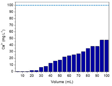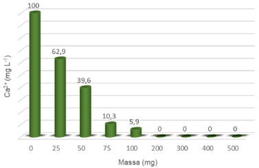 ![]() Figura 7. Concentração de Ca2+ após passagem de solução de Ca2+ 100,0 mg L-1 por coluna de zeólita hierárquica