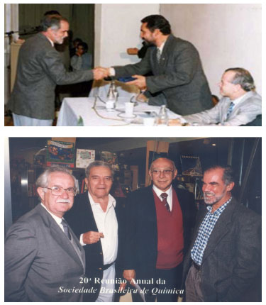 ![]() Figura 2. Homenagem durante a 20ª Reunião Anual da SBQ em Poços de Caldas (1997)