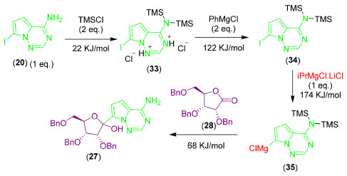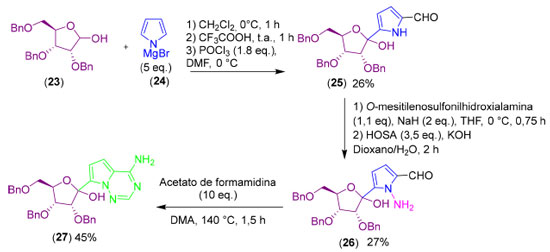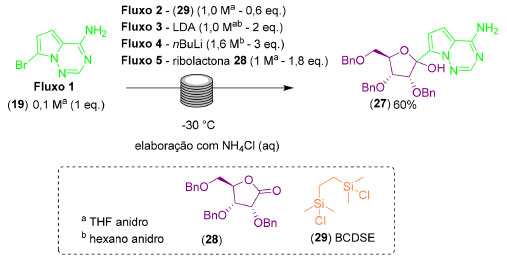 ![]() Esquema 14. Síntese do C-nucleosídeo 27 utilizando um sistema de fluxo