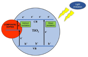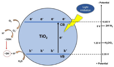 ![]() Figure 1. A schematic diagram illustrating the photocatalytic principle of TiO2