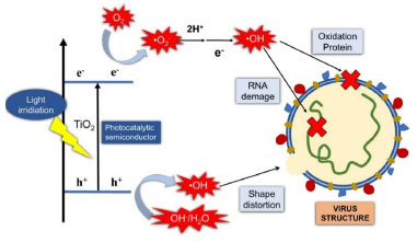 CONCLUSIONS The materials that are used in forming composites with TiO2 which reduce its band gap, are recommended as active photocatalysts with the exposure to visible or sunlight (Table 1). TiO2 composite photocatalysts produce ROS capable of killing various viruses (Table 2). This technology is potentially used as an effective weapon while fighting infectious disease transmission, including COVID-19. Therefore, further research in the field of photocatalysis and viral disinfection is a challenge, expected to serve as an opportunity. In addition, emphasis ought to be placed on applied study approaches using photocatalyst design to achieve SARS-CoV-2 virus disinfection. Also, understanding the various inactivation mechanism, comprising viral responses and the role of photocatalytic materials is considered essential.
