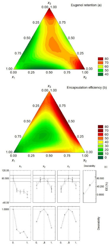 | Optimization of eugenol-loaded microcapsules obtained by spray drying using a simplex-centroid mixture design |